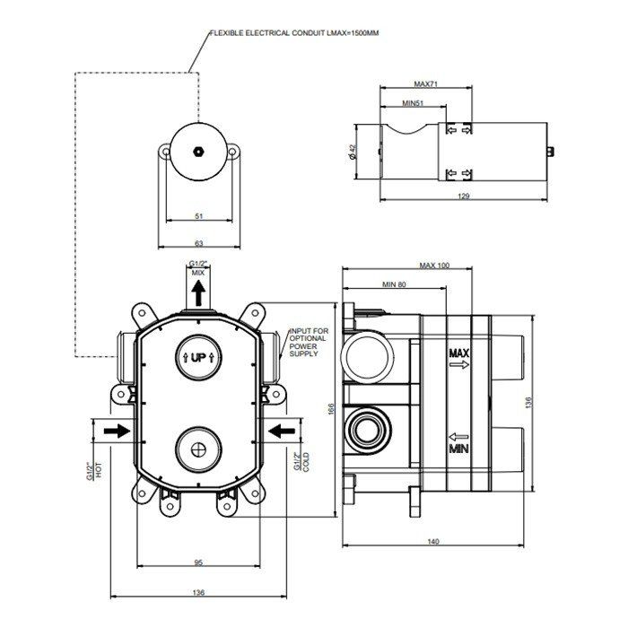 Gessi Built-in part скрытая часть для электронного смесителя, удаленного управления. Глубинаскрытогомонтажаминимум80мммаксимум100мм. Цвет хром.