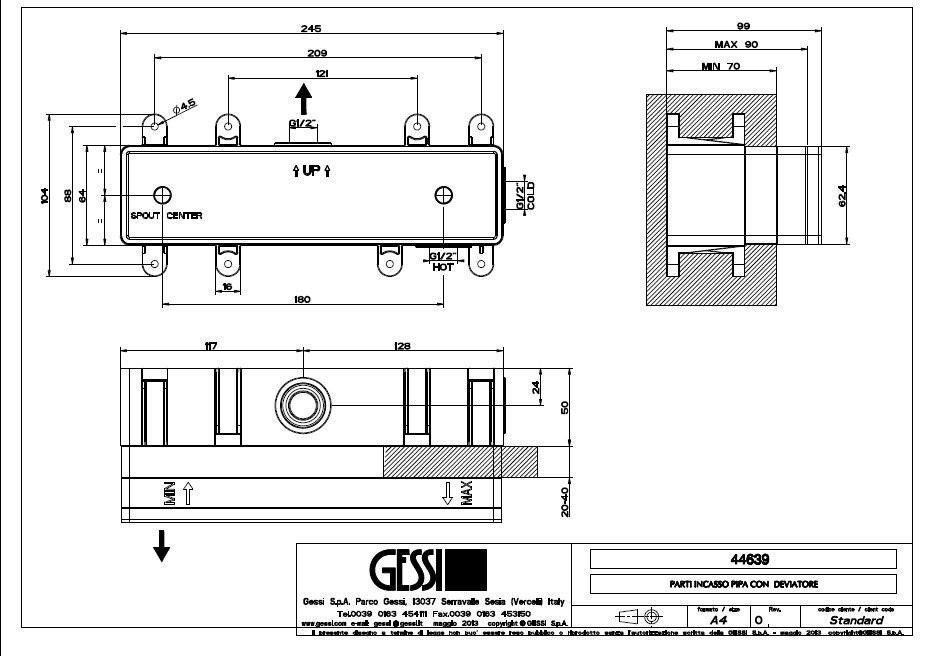 Скрытая часть для смесителя на два выхода Gessi 44639.031 купить