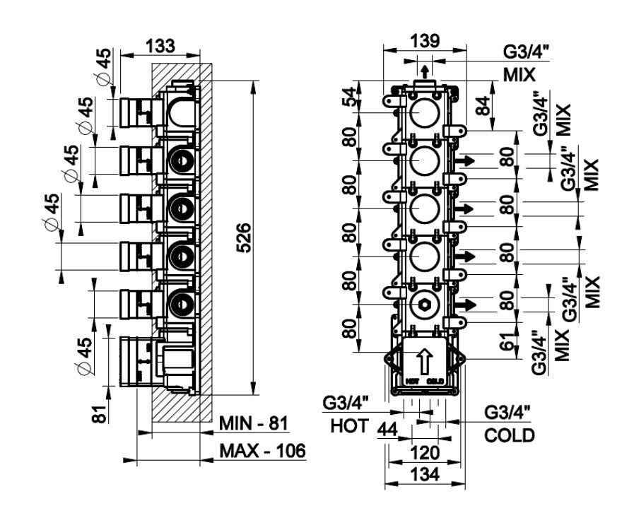 Скрытая часть для термостата Gessi Inciso — это высококачественный продукт, который обеспечивает надежное и эффективное управление температурой воды в вашем душевом кабинете или ванной. Уникальная конструкция позволяет подключение как в вертикальном, так и в горизонтальном положении, что делает установку максимально удобной и гибкой.