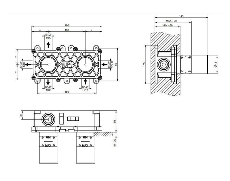 Монтаж скрытой части термостата Gessi удобен и надежен, что упрощает установку и дальнейшее обслуживание. Использование этой системы позволяет максимально эффективно организовать пространство, скрывая технические детали за стеной и оставляя на виду только элегантные элементы управления. Это идеальное решение для тех, кто ценит сочетание передовых технологий и эстетики в ванной комнате.