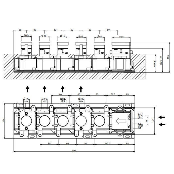 Термостат Gessi HI-FI встраиваемый с возможностью одновременного контроля до 4-х функций — это высокотехнологичный элемент для душевой системы, который сочетает элегантность и функциональность. Благодаря использованию этого термостата, можно эффективно управлять несколькими потоками воды одновременно, такими как дождевой душ, ручной душ, форсунки и другие элементы. Это обеспечивает оптимальные условия для принятия душа, регулируя температуру и напор воды с максимальной точностью.