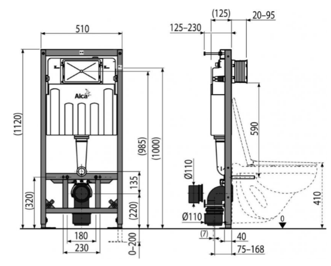 Скрытая система инсталляции AlcaPlast для сухой установки (для гипсокартона) Sadroмodul AM101/1120W