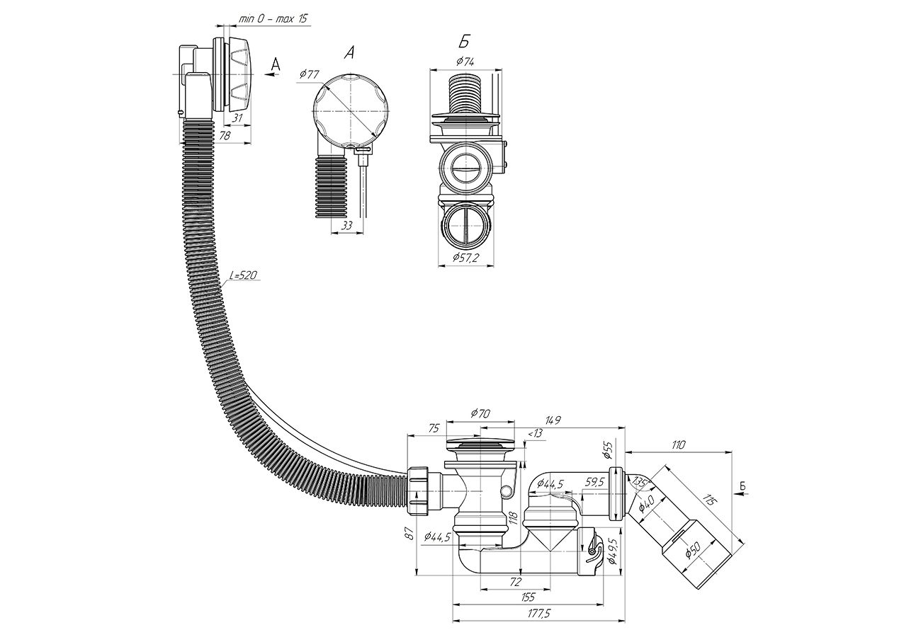 Слив-перелив полуавтомат 60 см Aquatek – это надежная и стильная система, предназначенная для обеспечения эффективного слива и предотвращения переполнения ванны. Изготовленная из качественных материалов, эта полуавтоматическая система сочетает в себе функциональность и элегантный дизайн. Полуавтоматический слив (тросик) управляется поворотом крышки перелива, соединенной тросиком с пробкой слива. Система включает в себя вентиль, донный клапан и тросик, позволяющие легко управлять процессом слива воды. Поворот вентиля обеспечивает удобное открытие и закрытие донного клапана, а встроенный гидрозатвор предотвращает проникновение неприятных запахов из канализации, обеспечивая комфортное использование ванной. Закрытие и открытие сливного отверстия происходит с помощью вращающейся крышки из нержавеющей стали диаметром 77 мм на отверстии перелива. Максимальная длина гофрированной трубы перелива 520 мм. Пробка обвязки для ванны из нержавеющей стали диаметром 43 мм. Обвязка изготовлена из пропилена, сифон регулируемый с жесткой трубой, выход на канализацию можно организовать с помощью переходной трубкой под углом 45 градусов и диаметром 40-50 мм. Цвет хром слив-перелива гармонично вписывается в любой интерьер, а его компактные размеры позволяют легко интегрировать систему в пространство под ванной. В комплект поставки входят необходимые для монтажа фитинги и уплотнители.