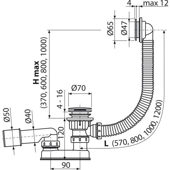 • Для ванн с выпускным отверстием Ø52 мм