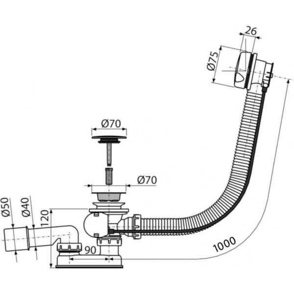 Слив-перелив для ванны AlcaPlast пластик 100см белый A51BM-100