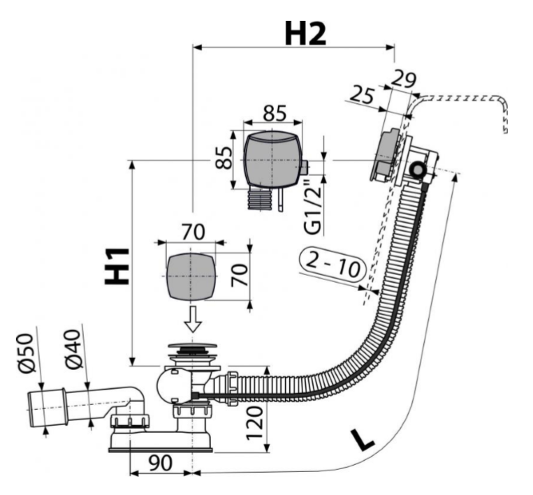 Слив-перелив для ванны AlcaPlast с напуском воды через перелив 57см хромированный пластик A564CRM2 купить