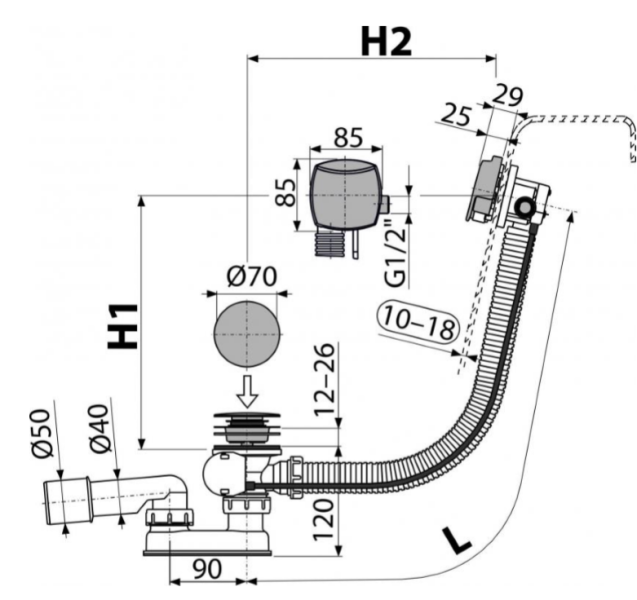 - Для ванн с выпускным отверстием Ø52 мм