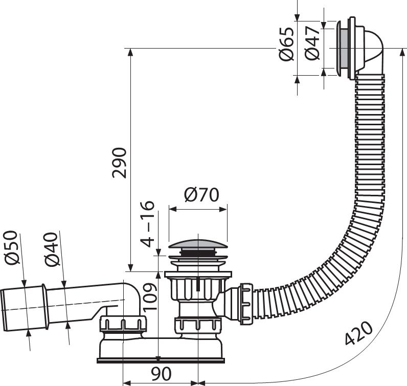 - Для душевых поддонов с переливом