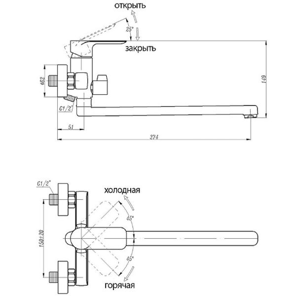 В комплекте поставки:Смеситель для ванны.
