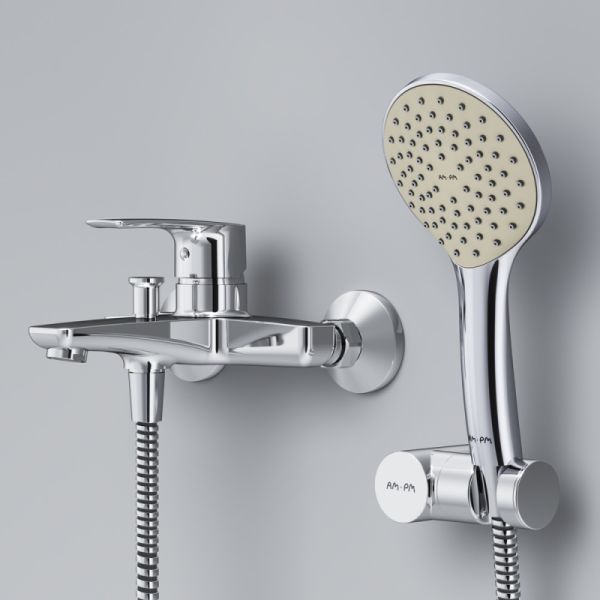 Top-Seller’е. Брутальный и трендовый дизайн: уникальная шестигранная форма выделяется среди однообразных стандартных смесителей в доступном ценовом сегменте.Эксклюзивная разработка: специально спроектированный для АМ.РМ керамический картридж SoftMotion 35 мм обеспечивает оптимальную регулировку температуры, а также позволяет выдерживать любые перепады давления. Точная инженерия для Вашего комфорта: благодаря обширной зоне движения ручки управлять температурой воды еще проще.В комплекте душевой набор: стильный ручной душ 110 мм 1 режим, настенный держатель с регулировкой угла наклона, душевой шланг с защитой от скручивания.