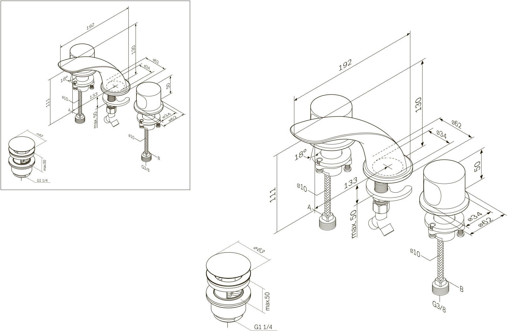 • Высота смесителя: