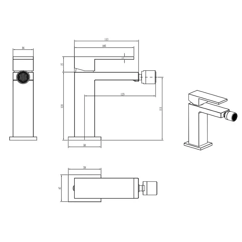 Смеситель для биде Boheme Qubic 476-CB брашированная медь купить