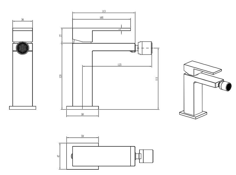 Смеситель для биде Boheme Qubic 476-SGM.Характеристики:Цвет: антрацит глянец.