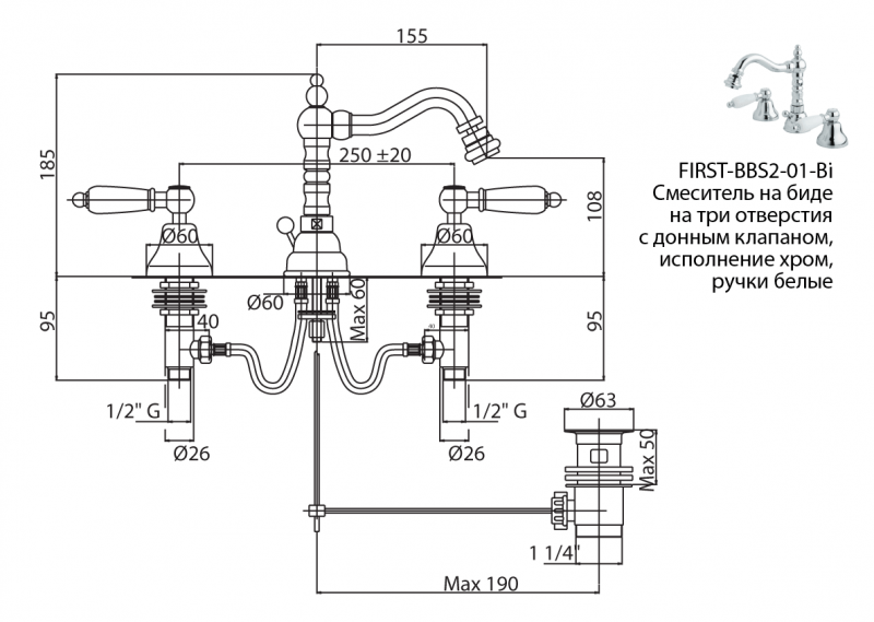 Смеситель для биде Cezares FIRST-BBS2-01-M хром купить