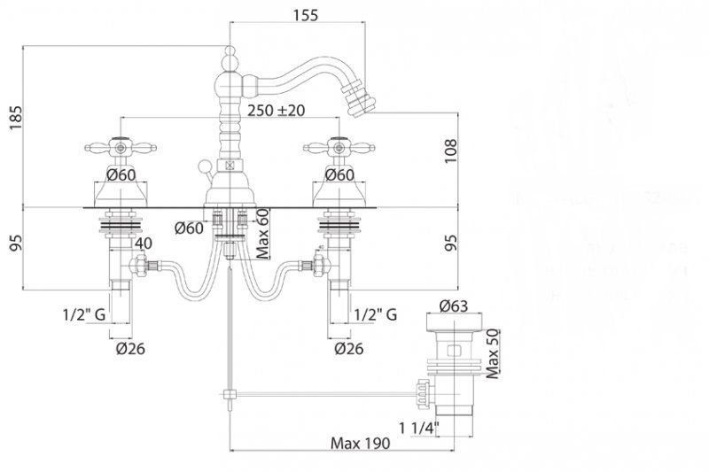 Смеситель для биде на три отверстия, бронза Cezares NOSTALGIA-BBS2-02 купить