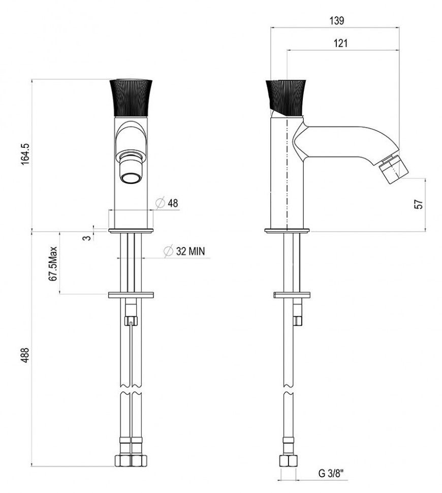 • Высота смесителя: