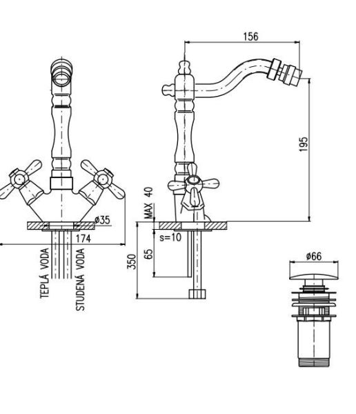 Смеситель для биде Rav Slezak Morava Retro MK121.5/9CMATSM черный матовый купить