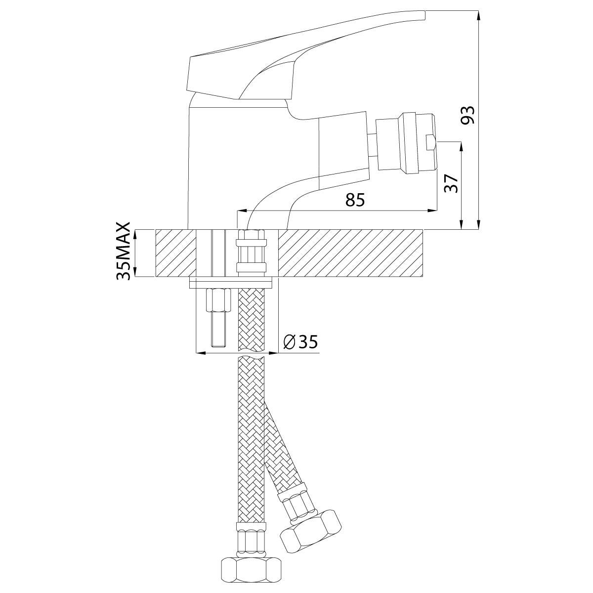 • Высота смесителя: