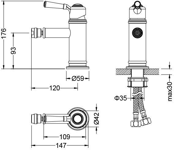 • Высота смесителя: