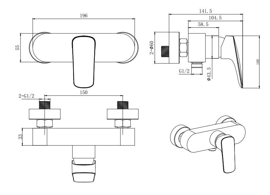 Аксессуары в комплекте: настенный переходник/отражатель