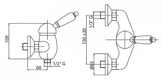 Смеситель для душа однорычажный, бронза Cezares ELITE-DM-02-Nc