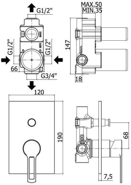 Смеситель встраиваемый для душа на 2 выхода с накладкой нерж сталь 120х190мм.девиатор-кнопка, ХромСмеситель для душа Paffoni Ringo RIN015CR/M (с внутренней частью) предназначен для душа. Своим ярким дизайном и колористикой он внесет в интерьер помещения особое настроение, подчеркнув его своеобразие. Он изготовлен из надежного материала латунь/Нержавеющая сталь, который не окисляется, а потому прослужит долго. Изделие является оптимальным примером достойного качества. Управление в смесителе предусмотрено однорычажное, что отвечает пожеланиям любителей такого типа смесителей. Высокую надежность и долговечность смесителю гарантирует керамический картридж, главным преимуществом которого является продуманная конструкция - залог безупречной работы в течение продолжительного времени. Не напрасно гарантия на смеситель – 5 лет, в течение которого компания Paffoni заверяет в его бесперебойной работе. Форма излива в смесителе - нет, а тип - нет. При покупке учтите, что подводка у смесителя жесткая, что актуально для его монтажа.