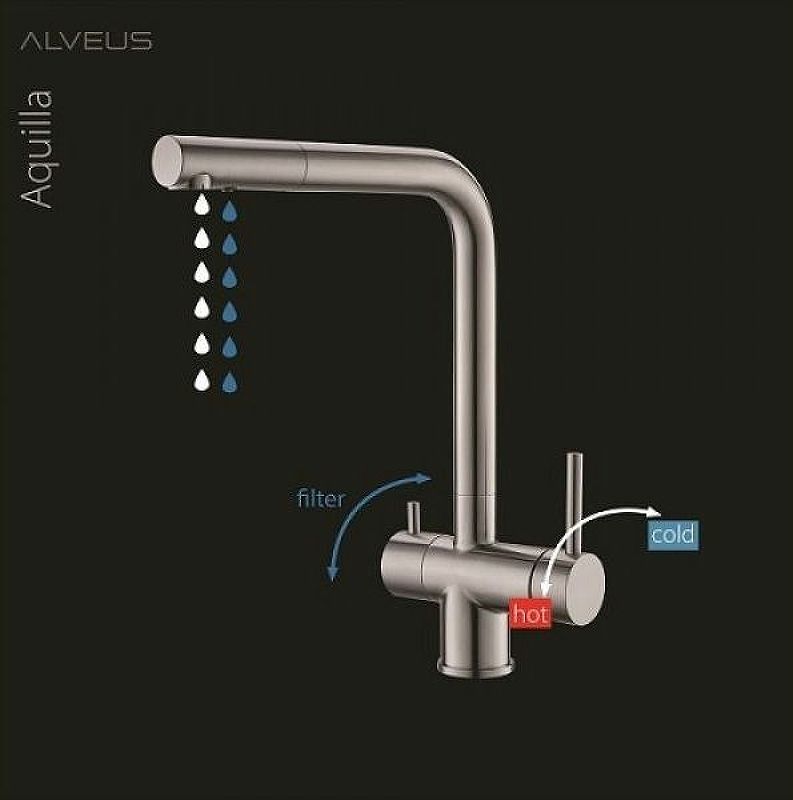 Смеситель для кухни Alveus Aquila G11 Arctic 1139806 БелыйВысококачественный смеситель для кухни от Alveus - ведущего производителя оборудования для кухни в Восточной Европе. Опыт производства техники для кухни с 1954 года. Высокий поворотный излив смесителя помогает облегчает мытье посуды. Натуральные оттенки смесителя из палитры GRANITAL позволяют идеально сочетать кухонную мойку и смеситель. Смеситель Aquila объединяет сразу две функции – питьевая и обычная вода из одного смесителя. Высокий двойной излив обеспечивает двойную функциональность – не потребуется выполнение дополнительного отверстия. Отдельный рычаг управления для питьевой воды значительно упрощает использование смесителя. Исключается смешивание питьевой воды с обычной. Благодаря широкому изливу удается быстро наполнять емкости даже питьевой водой.