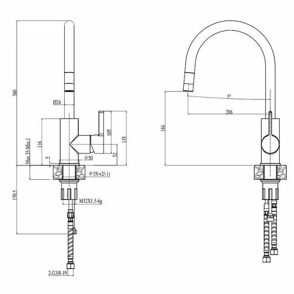 • Гибкий излив: