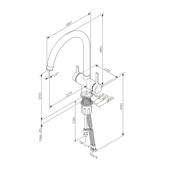 Встречайте долгожданное пополнение нашумевшей коллекции Func — кухонные смесители с оригинальными «фишками», характерными для всей коллекции. Дизайн, характерный только для премиум-сегмента, благодаря собственным дизайнерам бренда теперь представлен и в более доступной ценовой категории. Смеситель оснащён встроенным каналом для подачи питьевой воды. Чтобы получить питьевую воду, воспользуйтесь ручкой, расположенной с левой стороны корпуса; для обычной воды управляйте смесителем привычным образом. Размер (Ш/Г/В): 135x263x380 мм. Материал - нержавеющая сталь, цинк, латунь. Цвет - черный. Тип управления - однозахватный. Излив - поворотный.