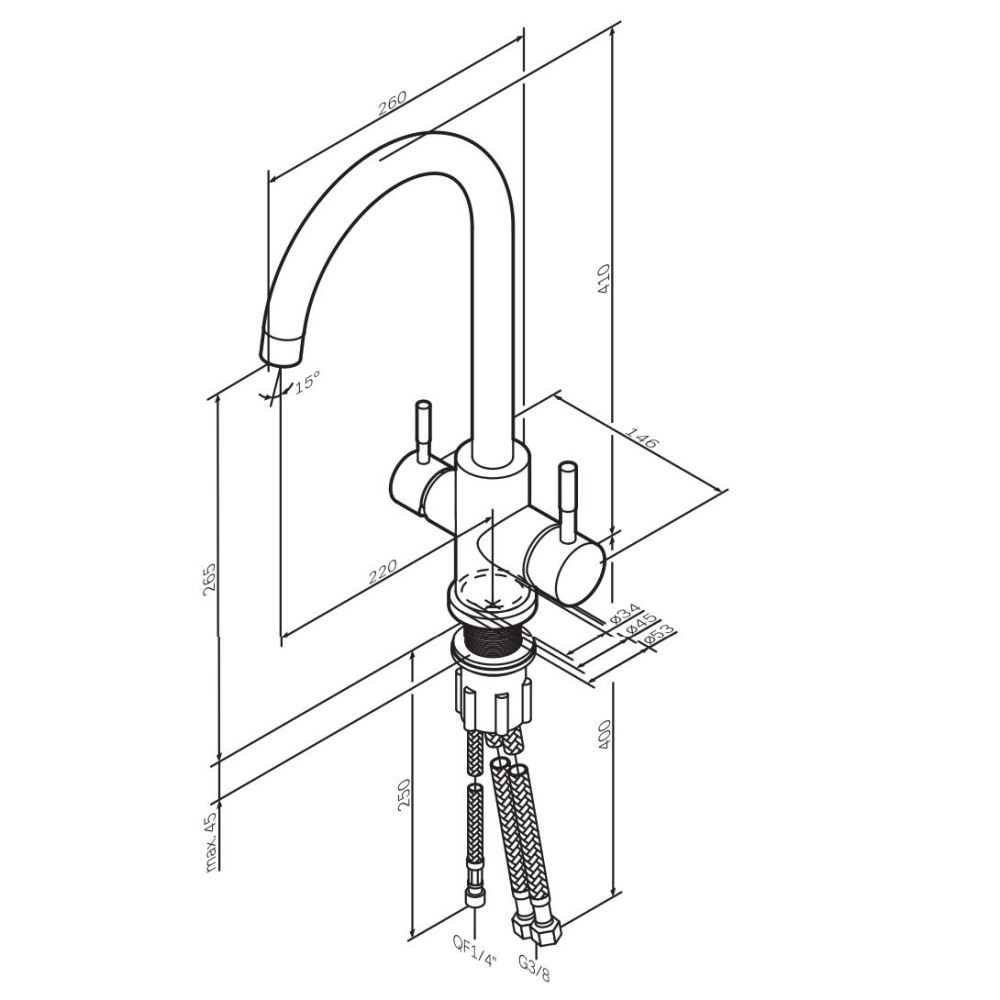 Смеситель оснащен встроенным каналом для питьевой воды. Для получения питьевой воды воспользуйтесь ручкой, расположенной с левой стороны корпуса, для получения обычной воды, просто управляйте смесителем привычным способом.