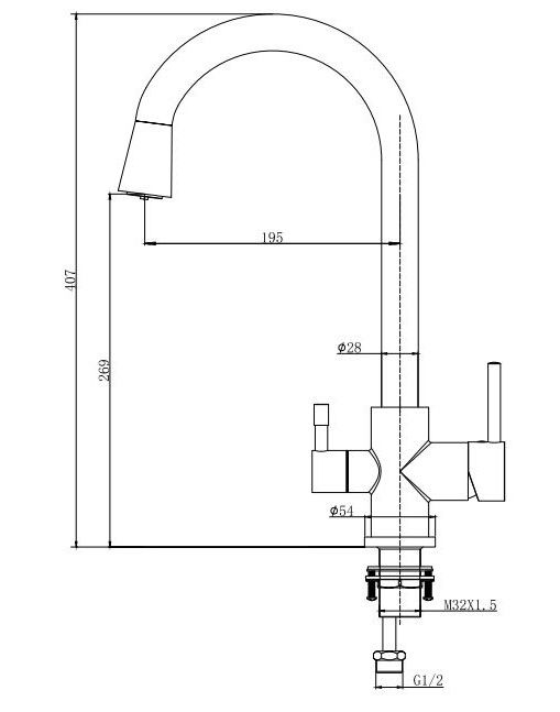 • оснащен высоким изливом, удобен для мытья крупных предметов
