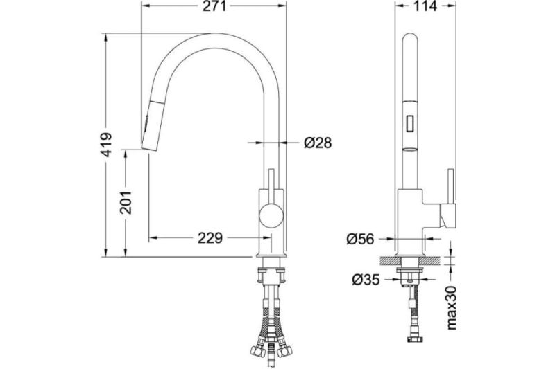 • Гибкий излив: