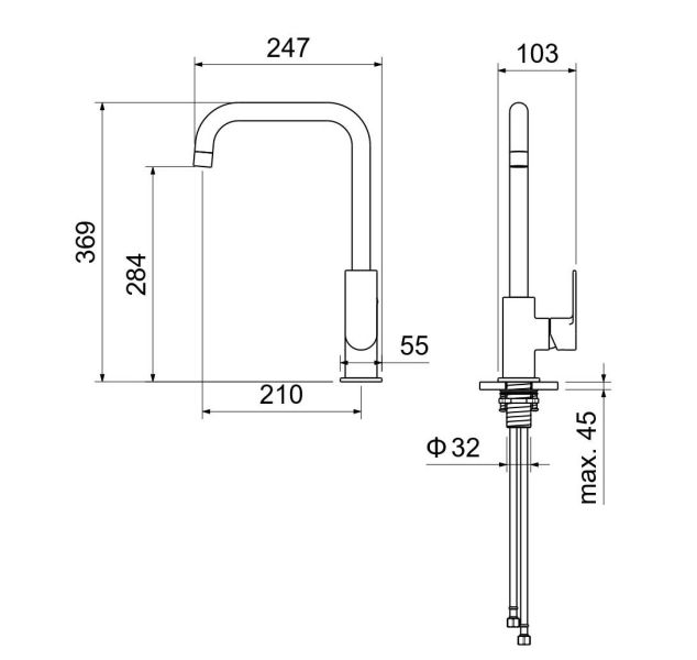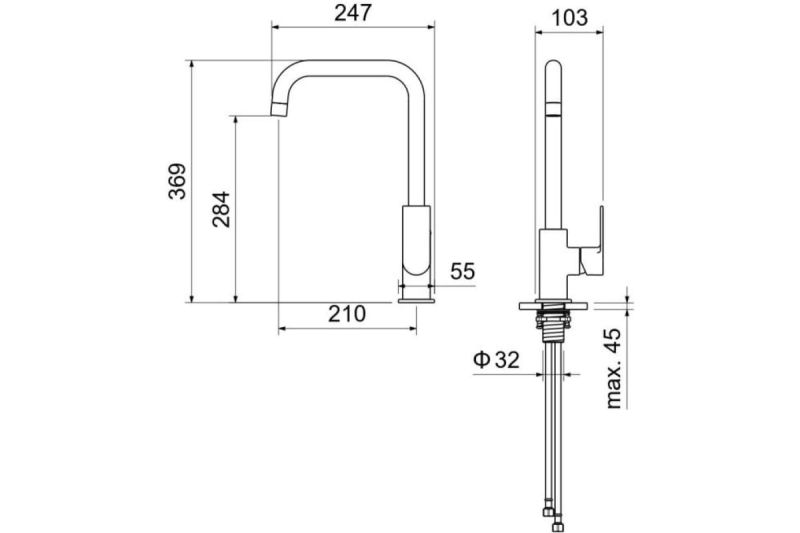 • оснащен высоким изливом, удобен для мытья крупных предметов