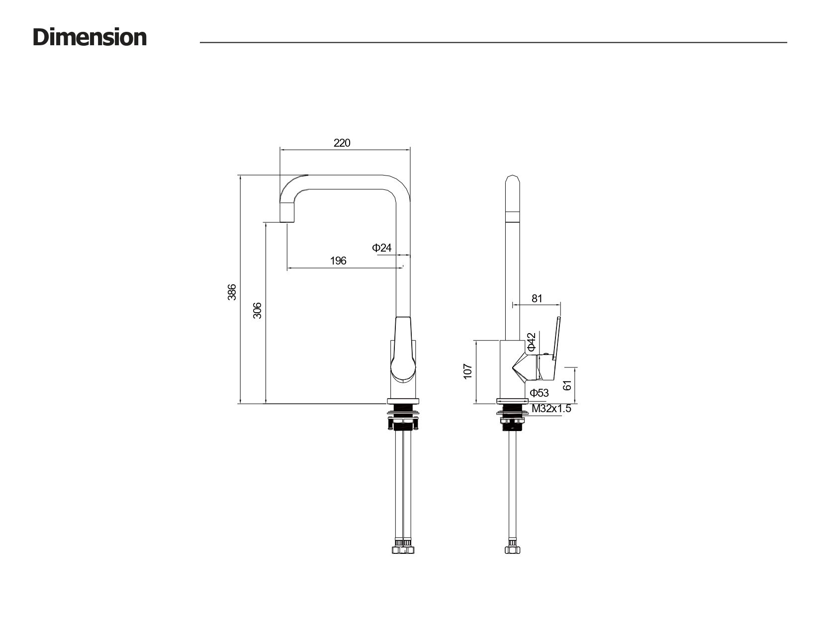 Габариты (ВхШ,см): 38,6х22,0Высота излива (см): 30,6Длина излива (см): 29,6Аэратор: в комплектеГибкая подводка в комплекте: ДаДлина гибкой подводки (см): 60Тип резьбового соединения: M10Стандарт подводки: 1/2"Вращение излива: поворотныйТип управления: рычажныйНазначение: Для кухонной мойкиКоличество монтажных отверстий: 1 отверстиеМеханизм: Керамический картридж WANHAIДиаметр картриджа (мм): 35