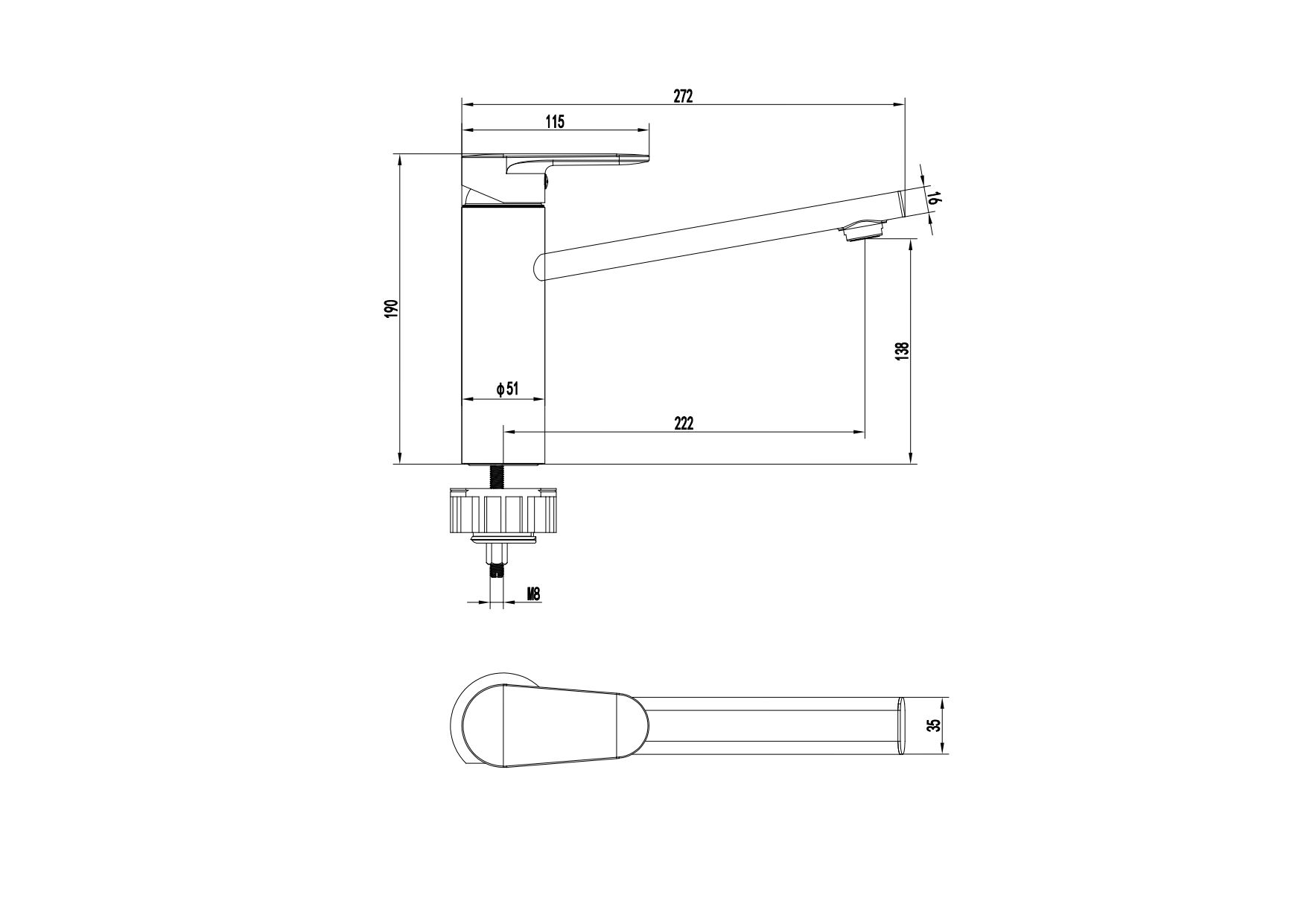 Длина излива (см): 22,2