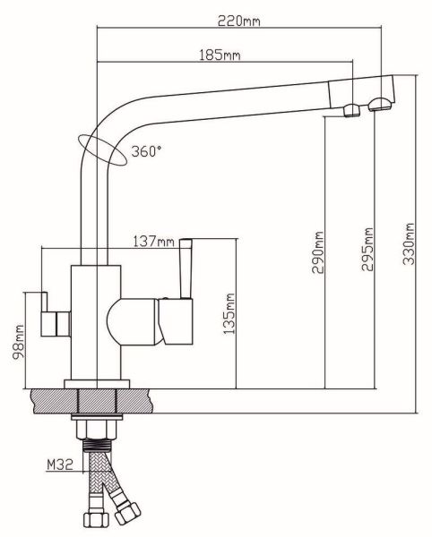 Смеситель для кухни BOOU 91401 с фильтром для питьевой воды хром