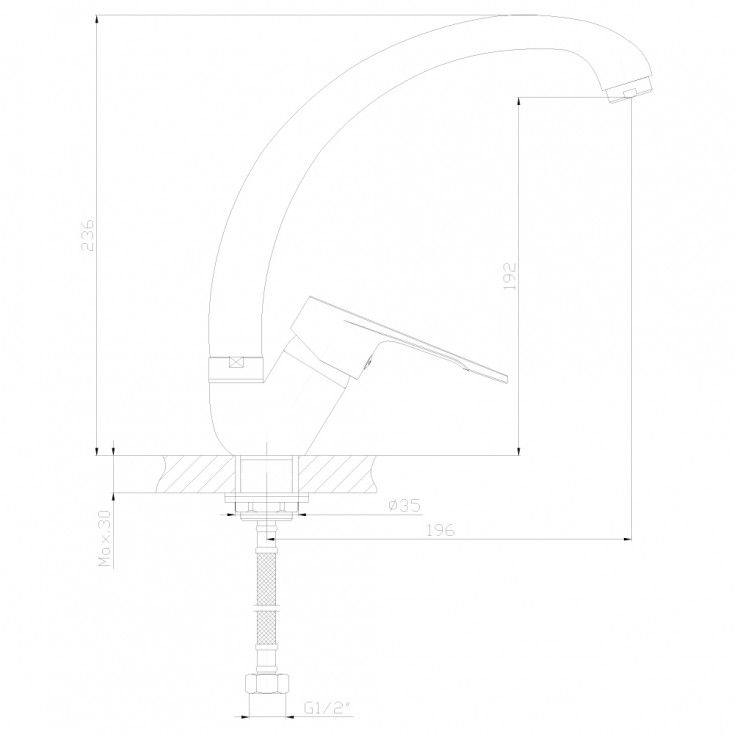 • Высота смесителя: