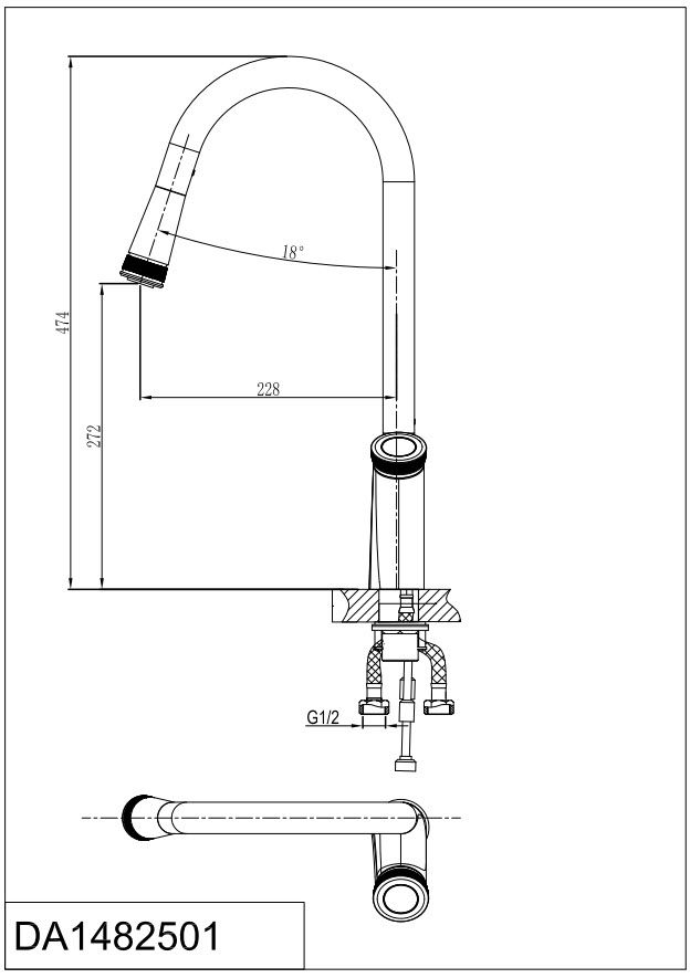 Смеситель для кухни DQ Bayern Alfeld с выдвижной лейкой хром DA1482501