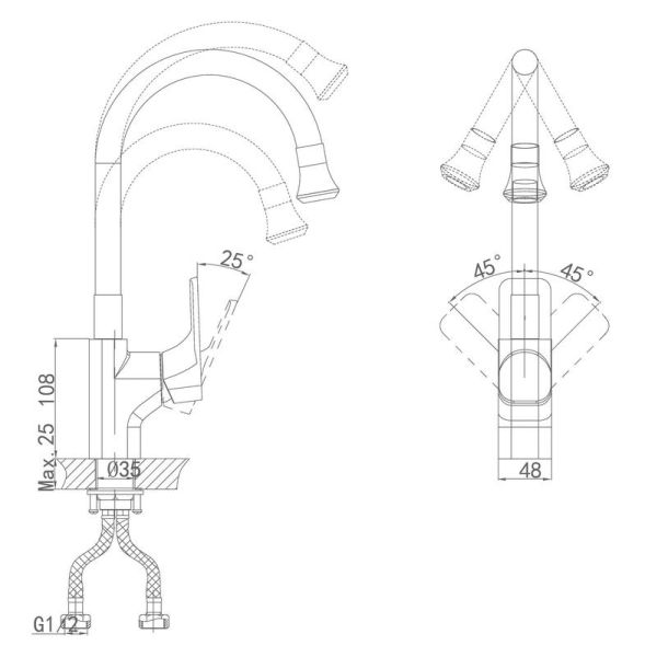 • Гибкий излив: