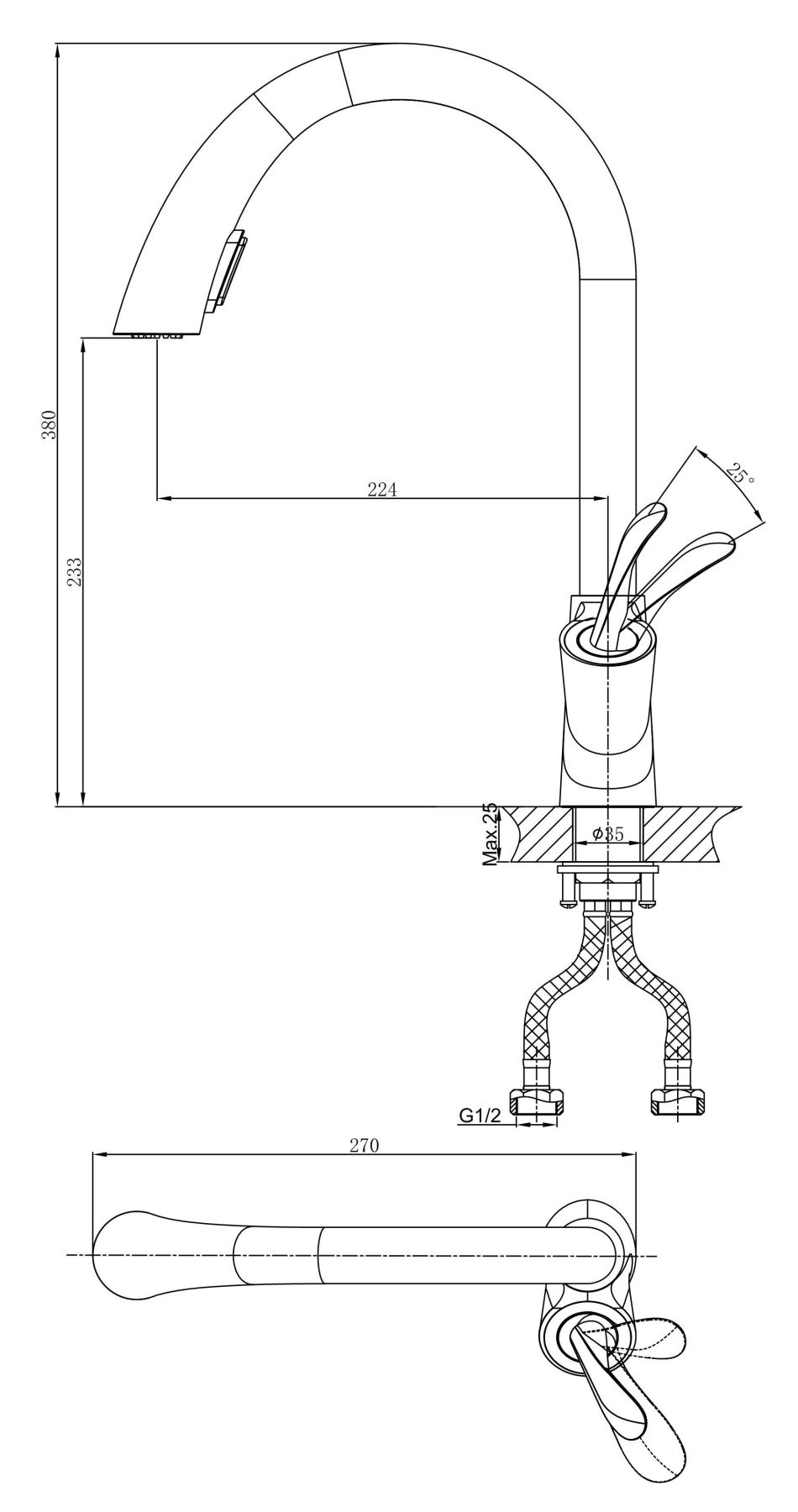 • Высота смесителя: