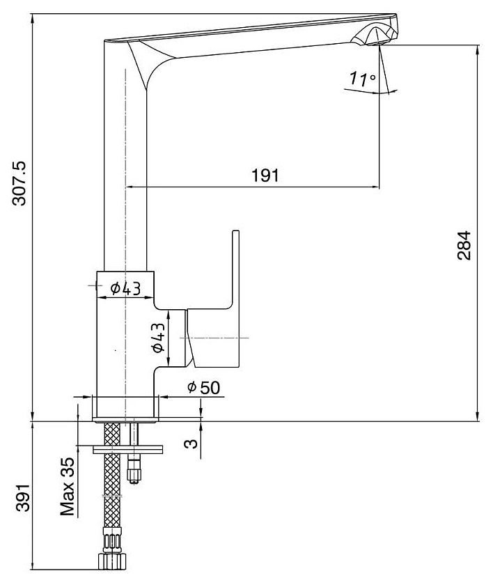 Высота смесителя:30.7