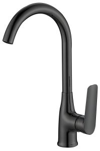 Смеситель "Lagos Black" для кухни, Г-излив, арт. LG06B: Стильный и прочный.Ищете смеситель, который станет изюминкой вашей кухни? Модель "Lagos Black" - это сочетание элегантного дизайна и надежности. Черный матовый корпус по современной технологии PPA материала придает ему современный вид, а П-образный излив обеспечивает удобство использования. Смеситель легко устанавливается благодаря стандартному креплению на широкий винт.Преимущества:Стильный дизайн: черный матовый корпус, современная форма.