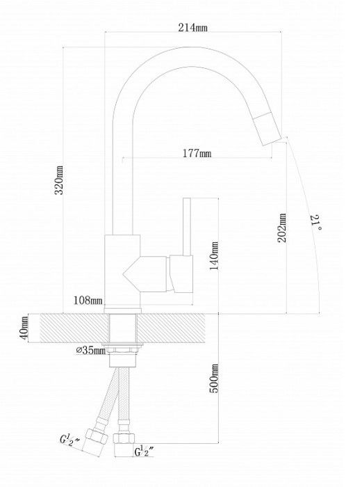 • Высота смесителя: