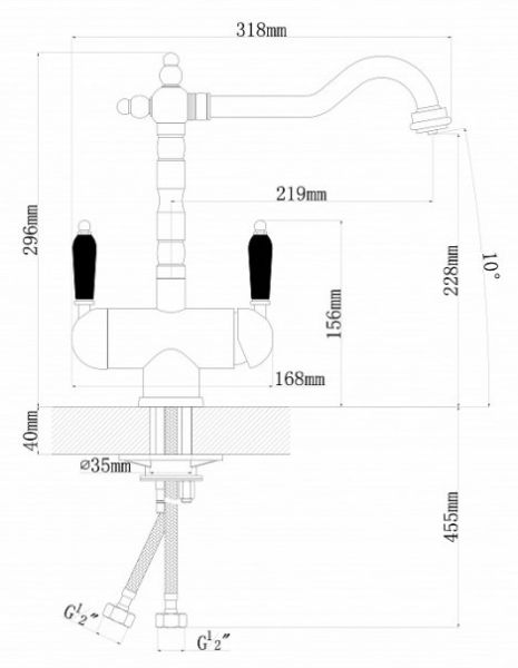 • Высота смесителя:
