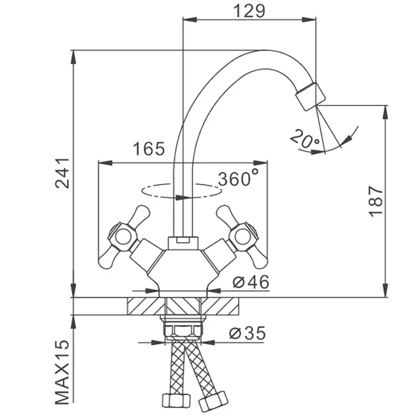 • Высота смесителя:
