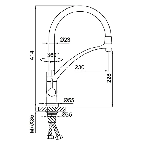 Гибкий излив более маневренный, чем обычный, и позволяет настроить высоту и угол излива под любые нужды