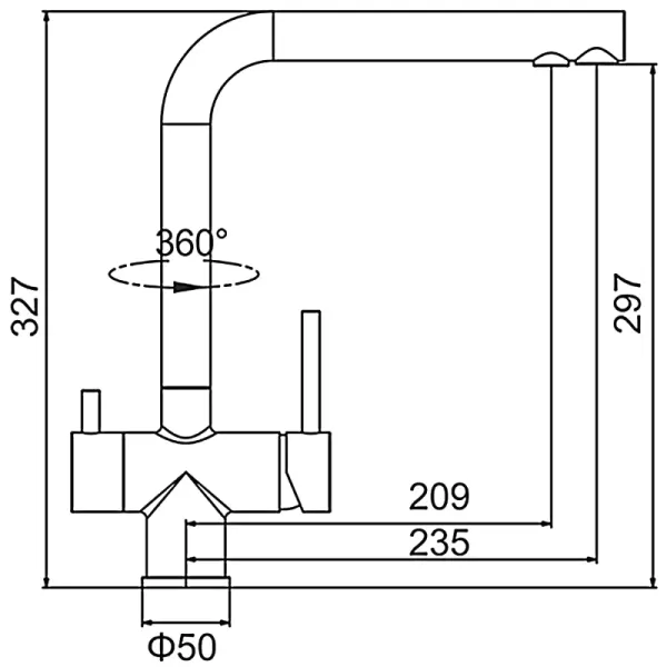 • Высота смесителя: