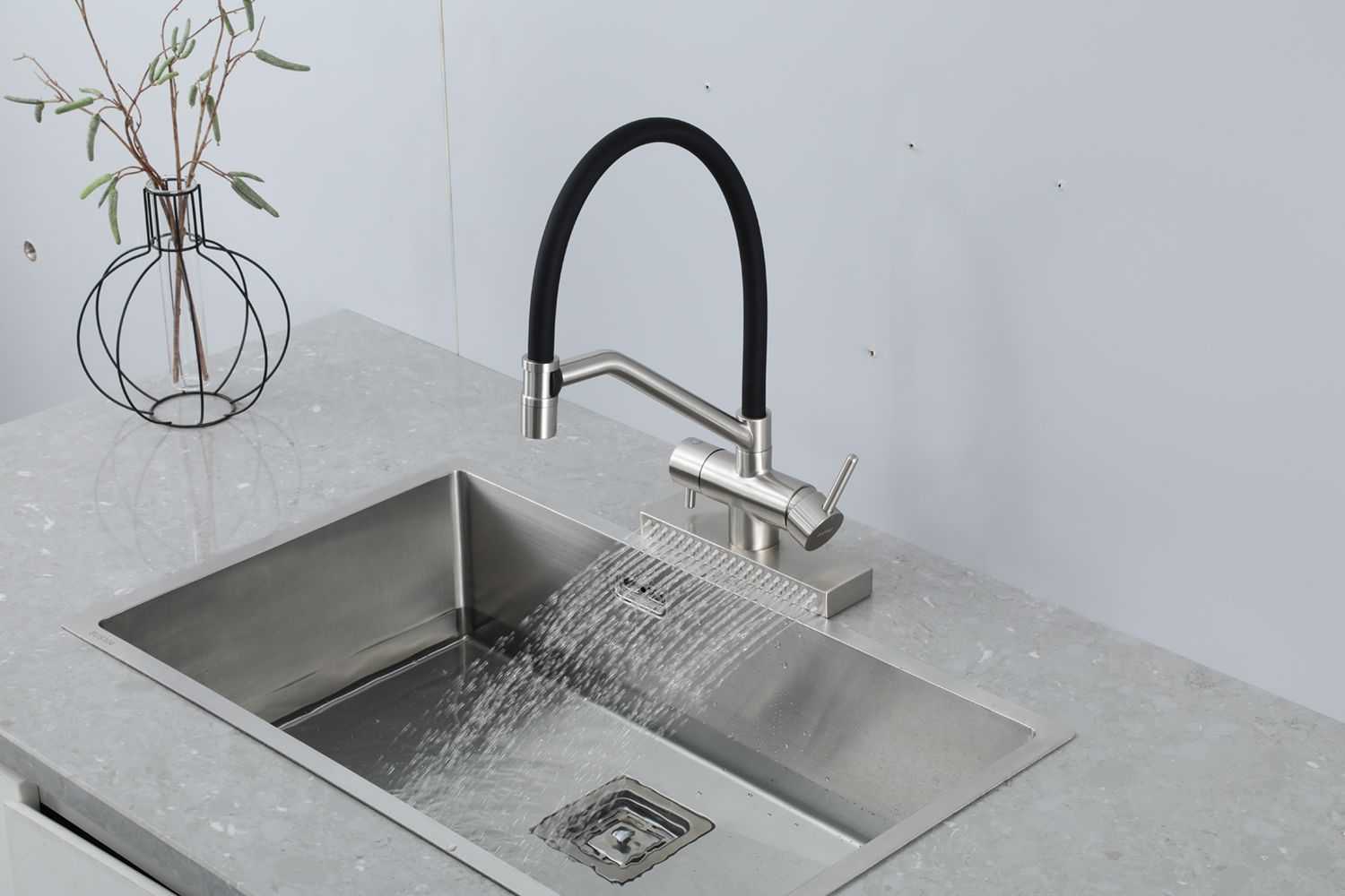 Смеситель для кухни Gappo G4098-5 с водопадом и гибким изливом сатин