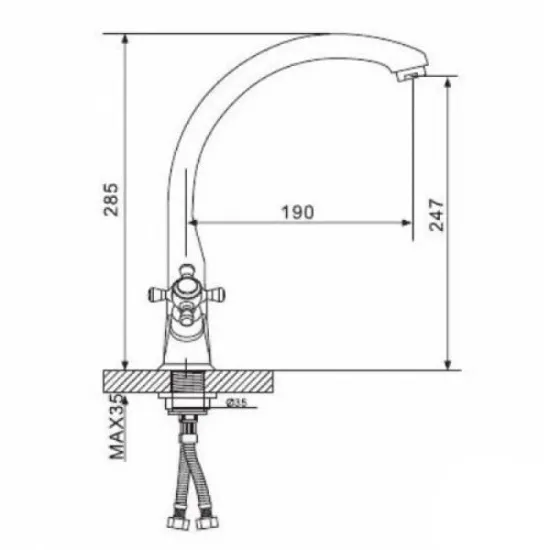 Cмеситель для кухонной мойки Gappo G4145 - двухвентильная модель из латуни, с поворотным изливом. Имеет гибкую подводку (500 мм) и кран-буксы с керамическими пластинами (угол поворота — 180 градусов). Цвет - хром.