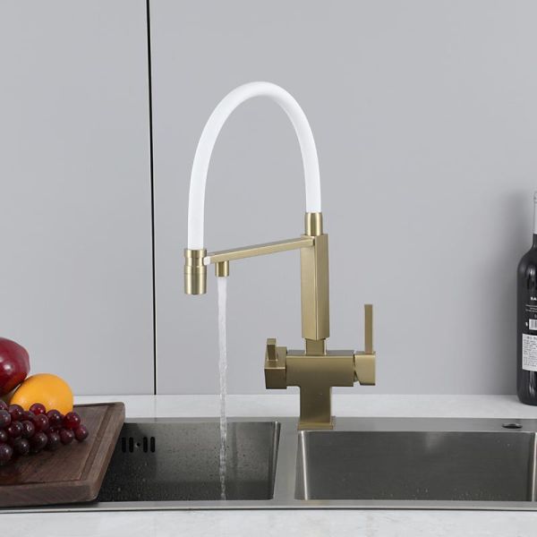 Смеситель для кухни Gappo G4395-53 с подключением фильтра питьевой воды и гибким изливом золото/белый